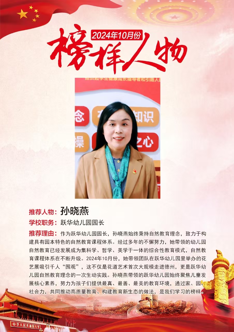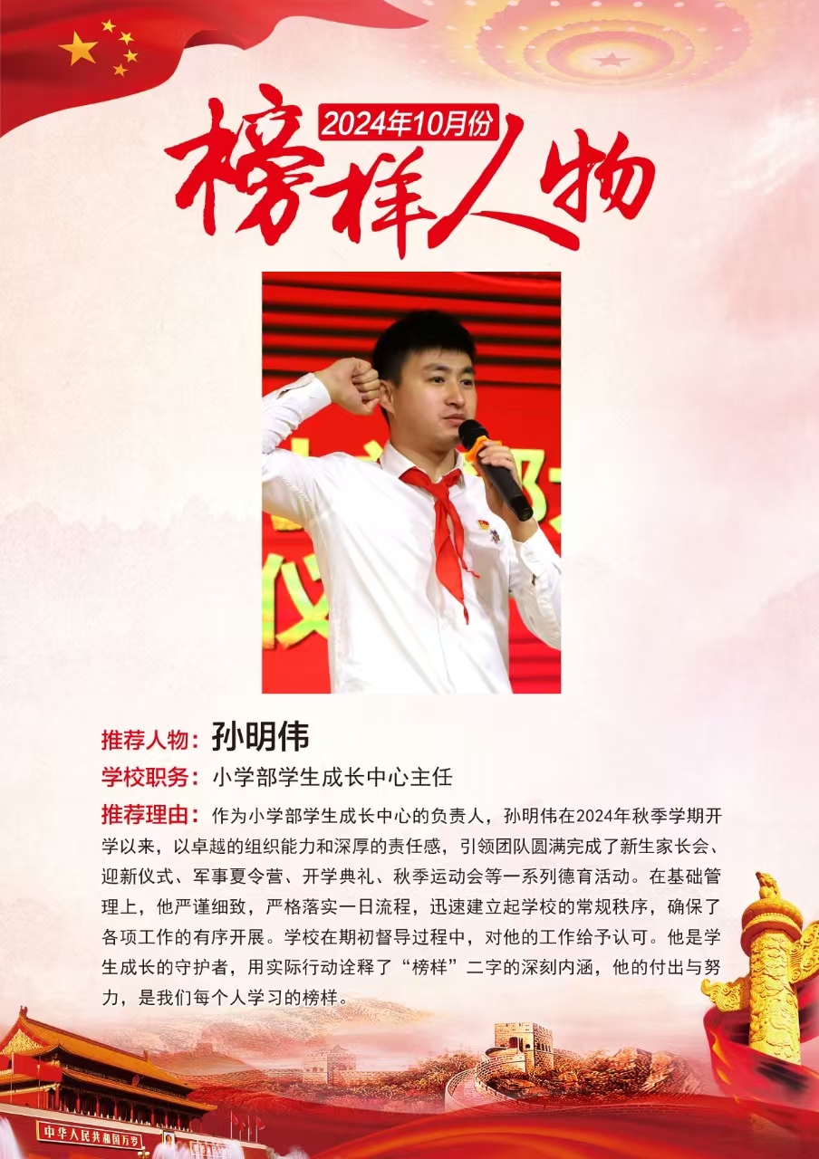 - 德州跃华学校党支部2024年10月份榜样人物——孙明伟、孙晓燕